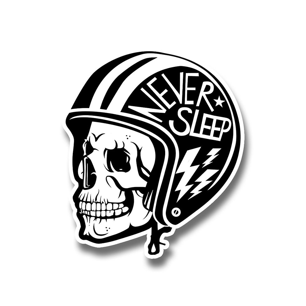 Never Sleep Skull Helmet Vinyl Decal 3"